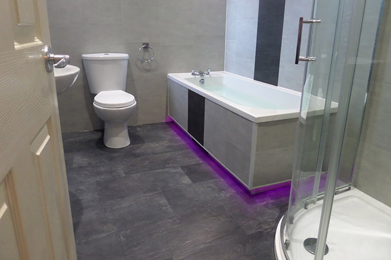 Our refurbishments take 2-3 days. The first day will be stripping out the old bathroom, removing it from site and plumbing in your new bathroom suite. You're never left without a toilet or washing facilities, everything will be put on stop valves for the boys to take out again the following day.